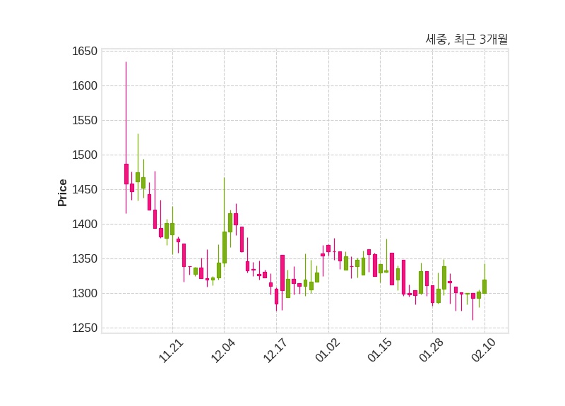 한편, 세중은 장 마감 이후 해당 기업공시를 발표했으며 오늘 종가가 1,319원, 거래량은 50,417주로, 직전 거래일 대비 17원(+1.31%) 상승했다.