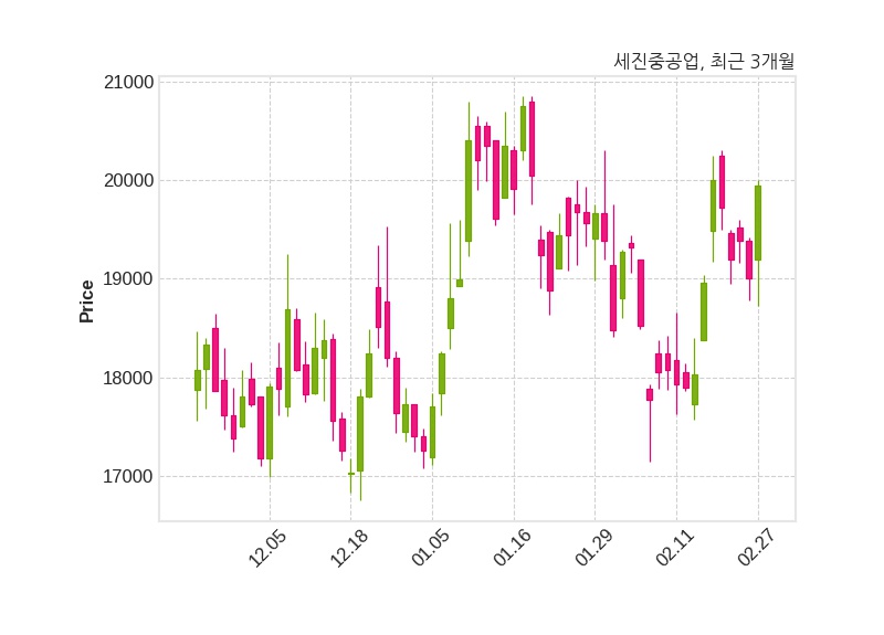한편, 세진중공업의 13시 12분 현재주가는 19,950원으로 직전 거래일 대비 950원(+5.0%) 상승이며, 거래량은 223,659주이다.