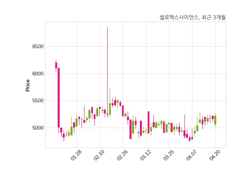 한편, 셀로맥스사이언스의 13시 55분 현재주가는 5,220원으로 직전 거래일 대비 50원(+0.97%) 상승이며, 거래량은 12,644주이다.