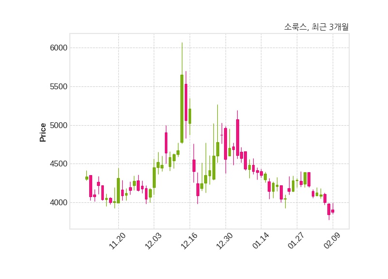 한편, 소룩스는 장 마감 이후 해당 기업공시를 발표했으며 오늘 종가가 3,870원, 거래량은 384,202주로, 직전 거래일 대비 30원(+0.78%) 상승했다.
