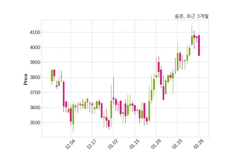 한편, 솔본은 장 마감 이후 해당 기업공시를 발표했으며 오늘 종가가 3,945원, 거래량은 72,732주로, 직전 거래일 대비 120원(-2.95%) 하락했다.