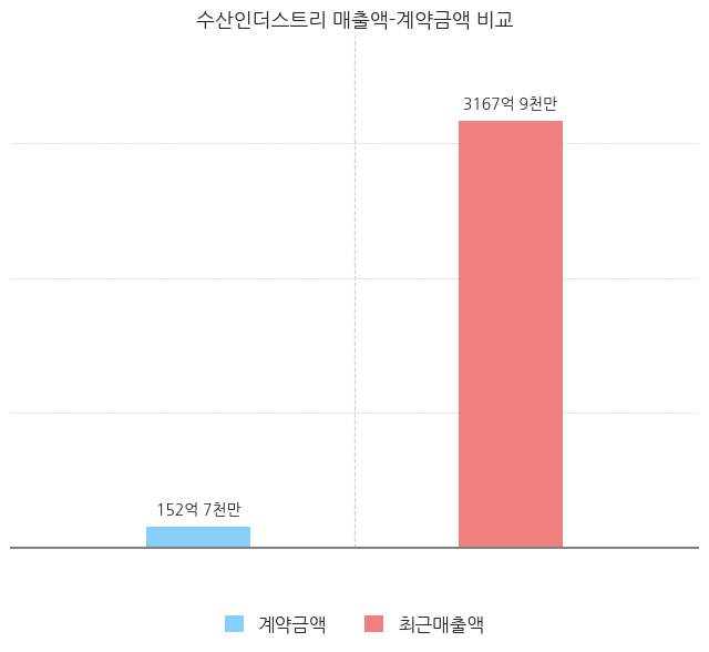 한편, 수산인더스트리는 장 마감 이후 해당 기업공시를 발표했으며 오늘 종가가 22,000원, 거래량은 23,513주로, 직전 거래일 대비 400원(-1.79%) 하락했다.