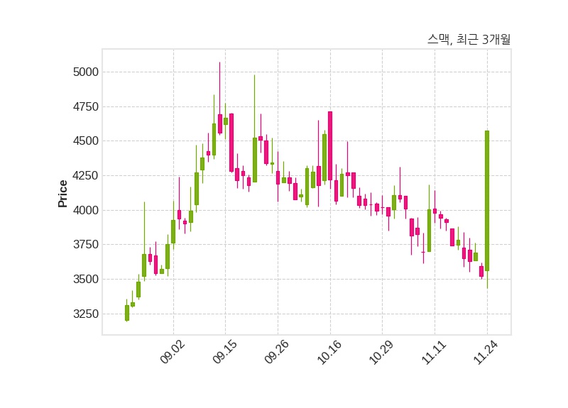스맥은 특별관계자 SNT홀딩스의 지분율이 20.2%에서 14.74%로 변동했다고 24일 공시했다. 한편, 스맥은 장 마감 이후 해당 기업공시를 발표했으며 오늘 종가가 4,575원, 거래량은 20,397,175주로, 직전 거래일 대비 1,055원(+29.97%) 상승했다.