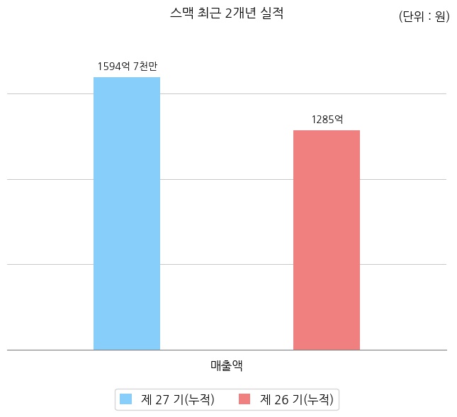 스맥은 2022년 연결기준으로 매출액 1594억 7천만 원, 영업이익 117억 5천만 원, 당기순이익 96억 8천만 원을 기록했다고 03월 21일 발표했다.
