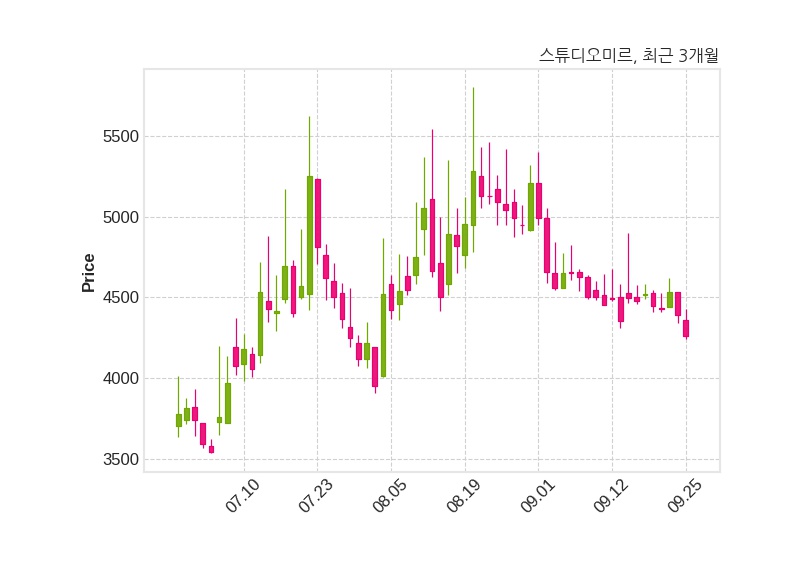 스튜디오미르는 특별관계자 유재명의 지분율이 65.42%에서 66.72%로 변동했다고 25일 공시했다. 한편, 스튜디오미르의 11시 33분 현재주가는 4,260원으로 직전 거래일 대비 130원(-2.96%) 하락이며, 거래량은 274,802주이다.