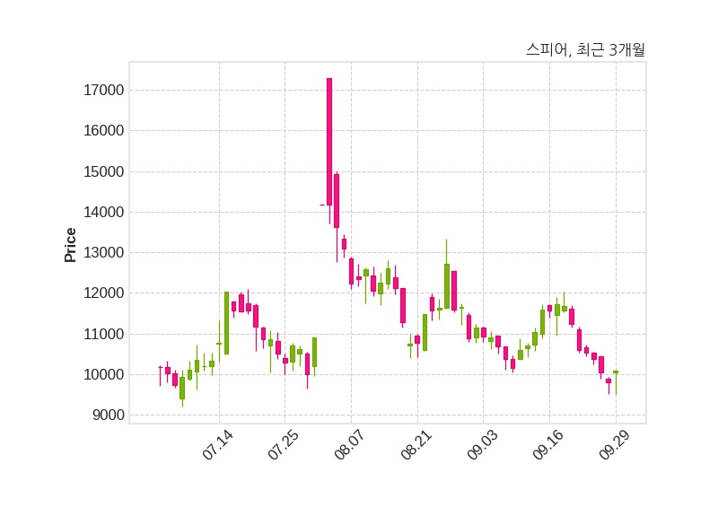 한편, 스피어는 장 마감 이후 해당 기업공시를 발표했으며 오늘 종가가 10,090원, 거래량은 161,318주로, 직전 거래일 대비 300원(+3.06%) 상승했다.