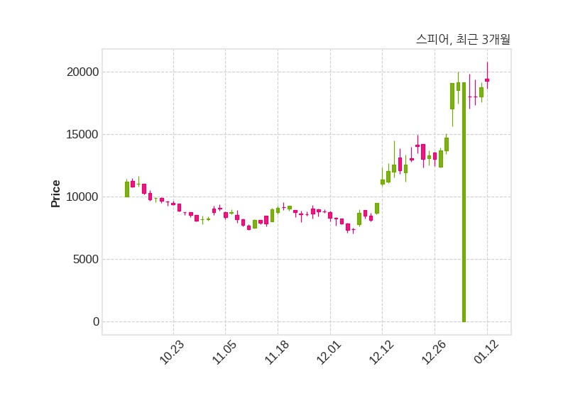 한편, 스피어는 장 마감 이후 해당 기업공시를 발표했으며 오늘 종가가 19,250원, 거래량은 4,192,155주로, 직전 거래일 대비 500원(+2.67%) 상승했다.