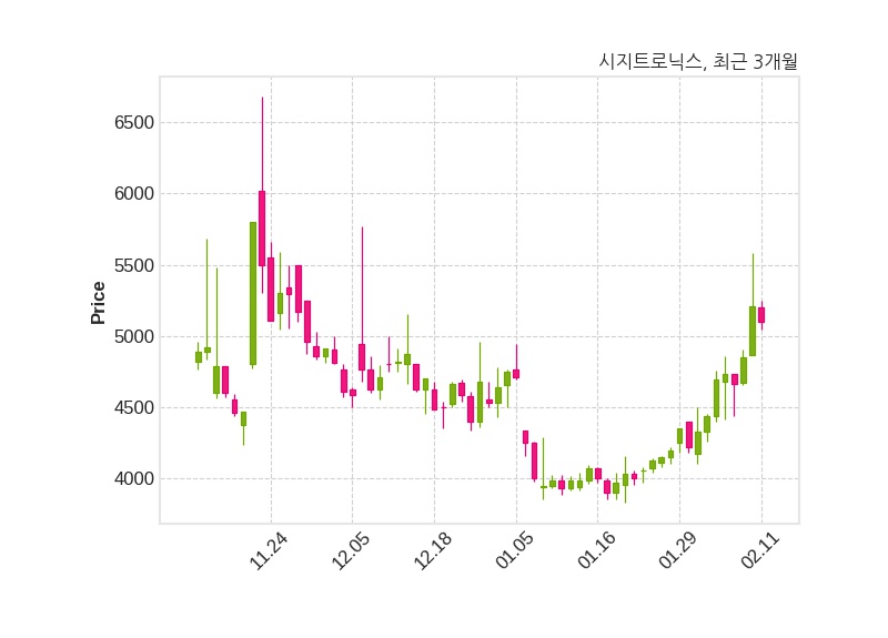 한편, 시지트로닉스의 15시 30분 현재주가는 5,100원으로 직전 거래일 대비 110원(-2.11%) 하락이며, 거래량은 91,715주이다.