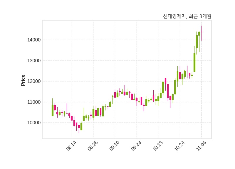 한편, 신대양제지는 장 마감 이후 해당 기업공시를 발표했으며 오늘 종가가 14,390원, 거래량은 60,824주로, 직전 거래일 대비 변동이없다.