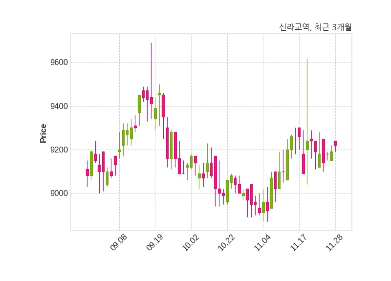 한편, 신라교역은 장 마감 이후 해당 기업공시를 발표했으며 오늘 종가가 9,220원, 거래량은 2,543주로, 직전 거래일 대비 30원(+0.33%) 상승했다.