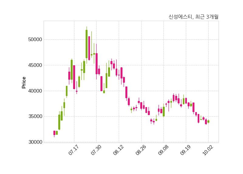 신성에스티는 특별관계자 안병두의 지분율이 13.13%에서 14.13%로 변동했다고 02일 공시했다. 한편, 신성에스티는 장 마감 이후 해당 기업공시를 발표했으며 오늘 종가가 34,200원, 거래량은 57,239주로, 직전 거래일 대비 650원(+1.94%) 상승했다.