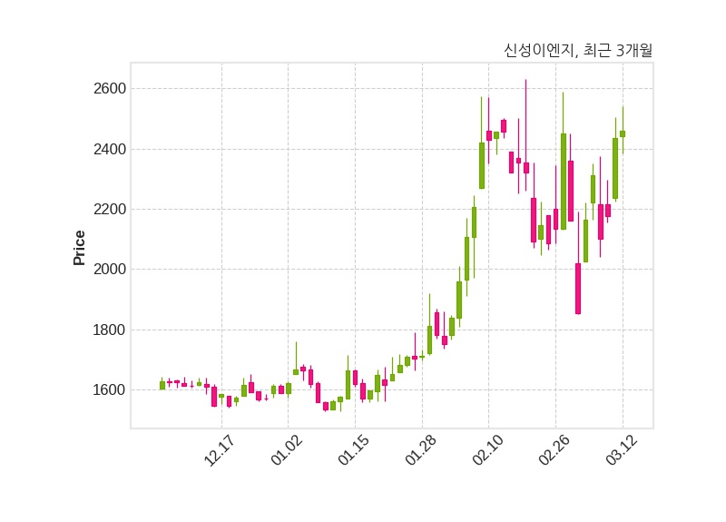 한편, 신성이엔지의 15시 10분 현재주가는 2,460원으로 직전 거래일 대비 25원(+1.03%) 상승이며, 거래량은 18,260,080주이다.
