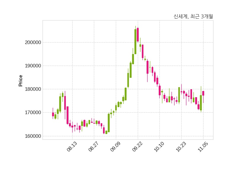 한편, 신세계의 09시 59분 현재주가는 177,400원으로 직전 거래일 대비 변동없으며, 거래량은 10,929주이다.