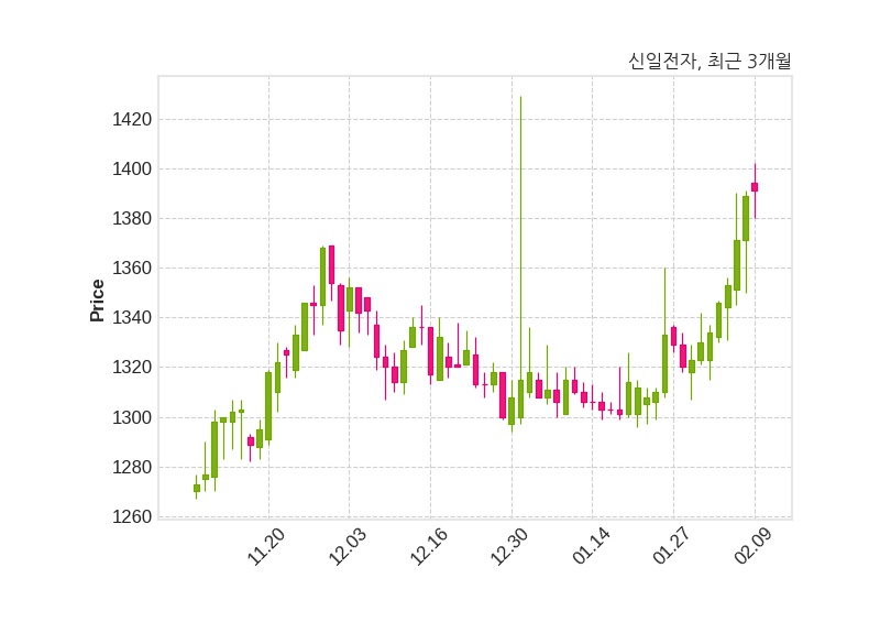 한편, 신일전자의 13시 34분 현재주가는 1,391원으로 직전 거래일 대비 2원(+0.14%) 상승이며, 거래량은 440,010주이다.