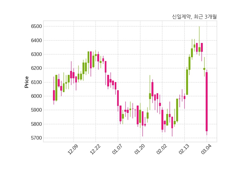 한편, 신일제약은 장 마감 이후 해당 기업공시를 발표했으며 오늘 종가가 5,750원, 거래량은 123,208주로, 직전 거래일 대비 450원(-7.26%) 하락했다.