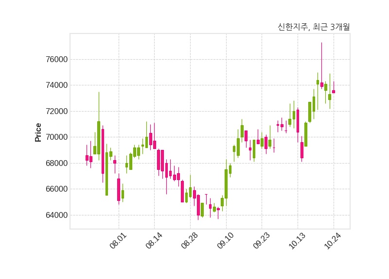 한편, 신한지주는 장 마감 이후 해당 기업공시를 발표했으며 오늘 종가가 73,400원, 거래량은 854,727주로, 직전 거래일 대비 100원(+0.14%) 상승했다.