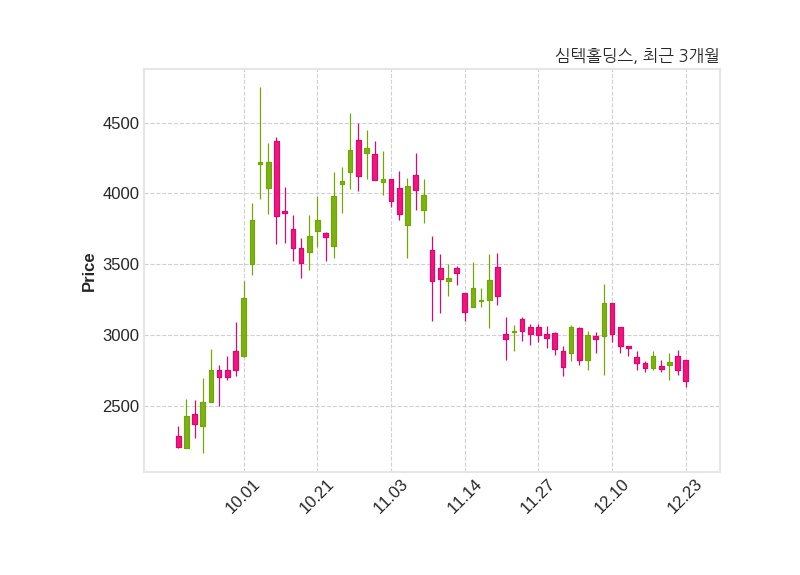 한편, 심텍홀딩스는 장 마감 이후 해당 기업공시를 발표했으며 오늘 종가가 2,675원, 거래량은 377,484주로, 직전 거래일 대비 75원(-2.73%) 하락했다.