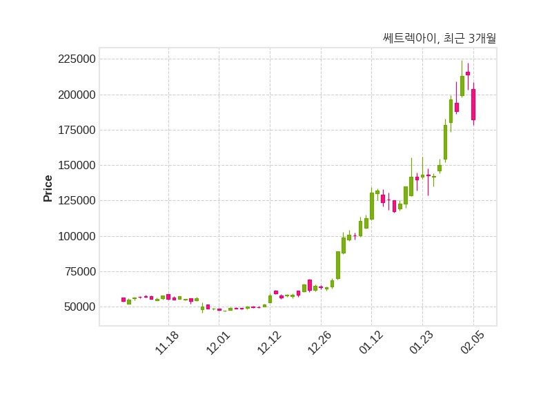 한편, 쎄트렉아이는 장 마감 이후 해당 기업공시를 발표했으며 오늘 종가가 182,200원, 거래량은 519,039주로, 직전 거래일 대비 31,800원(-14.86%) 하락했다.