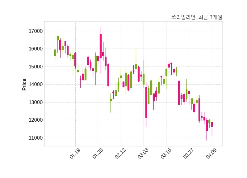 한편, 쓰리빌리언의 14시 26분 현재주가는 11,630원으로 직전 거래일 대비 360원(-3.0%) 하락이며, 거래량은 160,943주이다.