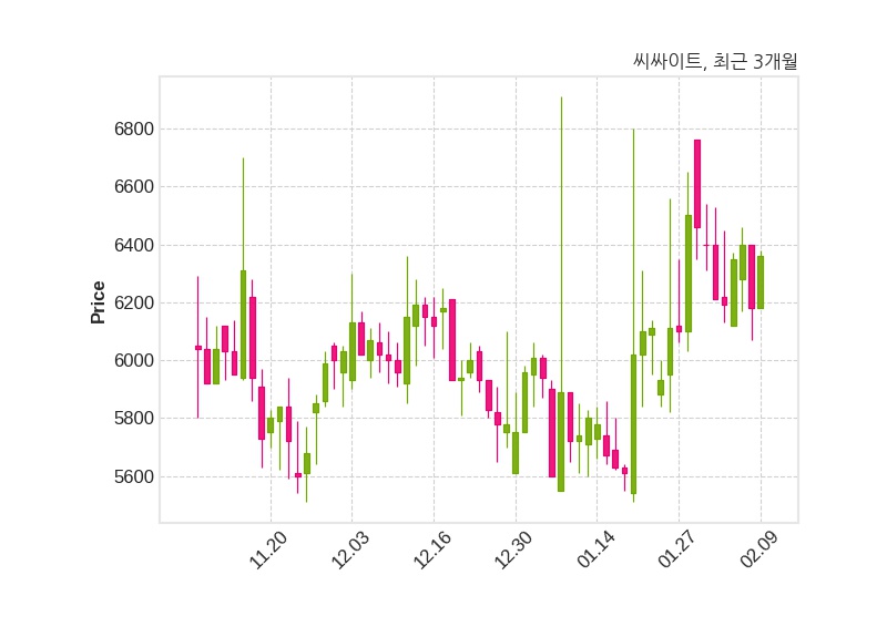 한편, 씨싸이트는 장 마감 이후 해당 기업공시를 발표했으며 오늘 종가가 6,360원, 거래량은 10,137주로, 직전 거래일 대비 180원(+2.91%) 상승했다.