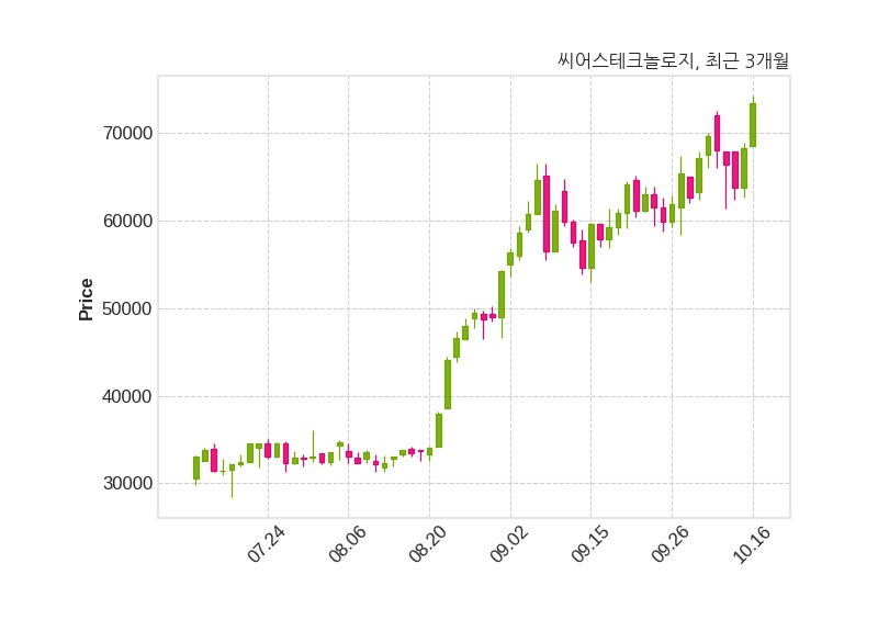 씨어스테크놀로지는 특별관계자 윈베스트벤처투자의 지분율이 4.96%에서 6.11%로 변동했다고 16일 공시했다. 한편, 씨어스테크놀로지는 장 마감 이후 해당 기업공시를 발표했으며 오늘 종가가 73,300원, 거래량은 158,311주로, 직전 거래일 대비 5,100원(+7.48%) 상승했다.