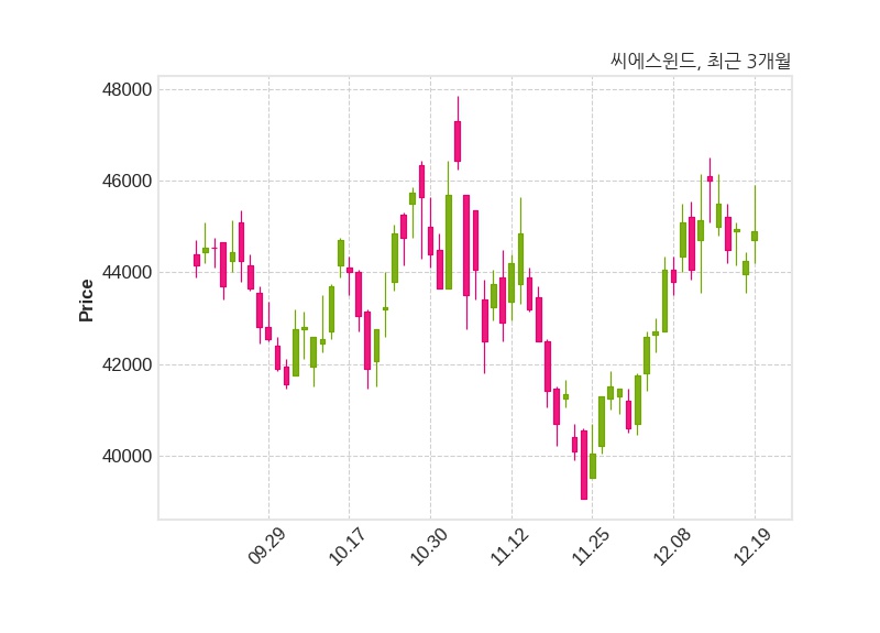 한편, 씨에스윈드의 11시 09분 현재주가는 44,900원으로 직전 거래일 대비 650원(+1.47%) 상승이며, 거래량은 124,088주이다.