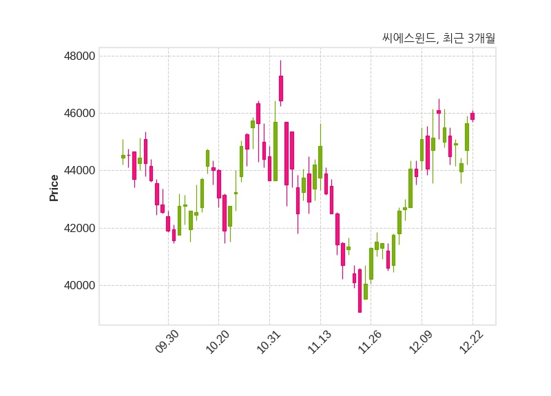한편, 씨에스윈드의 09시 07분 현재주가는 45,800원으로 직전 거래일 대비 150원(+0.33%) 상승이며, 거래량은 8,731주이다.