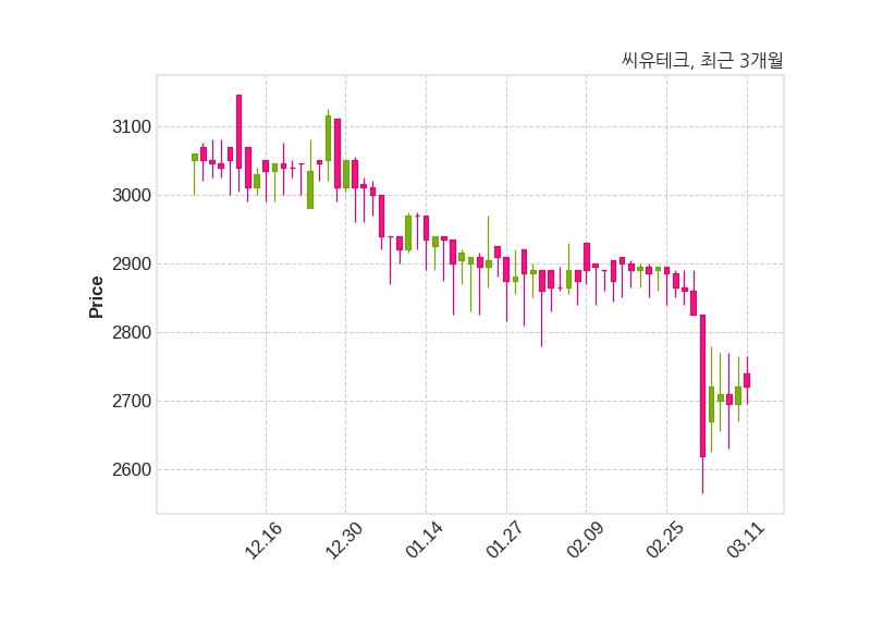 한편, 씨유테크는 장 마감 이후 해당 기업공시를 발표했으며 오늘 종가가 2,720원, 거래량은 12,719주로, 직전 거래일 대비 변동이없다.