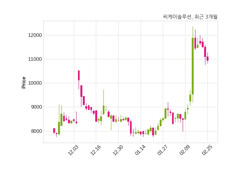 한편, 씨케이솔루션은 장 마감 이후 해당 기업공시를 발표했으며 오늘 종가가 10,950원, 거래량은 283,455주로, 직전 거래일 대비 150원(-1.35%) 하락했다.