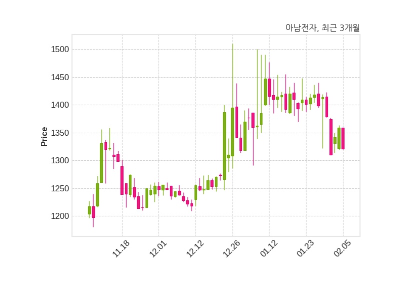 한편, 아남전자는 장 마감 이후 해당 기업공시를 발표했으며 오늘 종가가 1,321원, 거래량은 302,958주로, 직전 거래일 대비 38원(-2.8%) 하락했다.