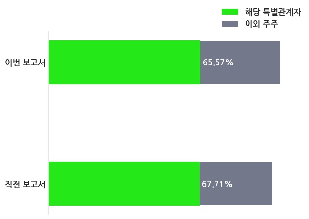 아모레퍼시픽홀딩스는 특별관계자 서경배의 지분율이 67.71%에서 65.57%로 변동했다고 20일 공시했다. 한편, 아모레퍼시픽홀딩스의 14시 26분 현재주가는 33,950원으로 직전 거래일 대비 950원(-2.72%) 하락이며, 거래량은 80,350주이다.
