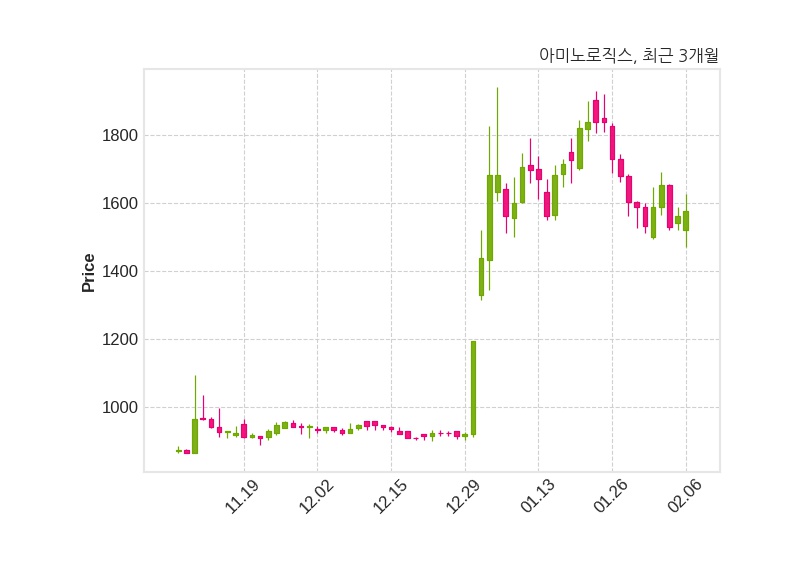 한편, 아미노로직스의 15시 26분 현재주가는 1,575원으로 직전 거래일 대비 14원(+0.9%) 상승이며, 거래량은 539,775주이다.