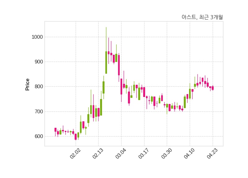아스트는 특별관계자 신한에스케이에스기업재무안정사모투자의 지분율이 11.87%에서 12.99%로 변동했다고 24일 공시했다. 한편, 아스트는 장 시작 전에 해당 기업공시를 발표했으며 전날 종가가 788원이었다.