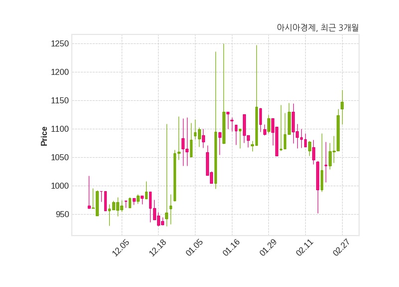한편, 아시아경제는 장 마감 이후 해당 기업공시를 발표했으며 오늘 종가가 1,148원, 거래량은 199,726주로, 직전 거래일 대비 24원(+2.14%) 상승했다.