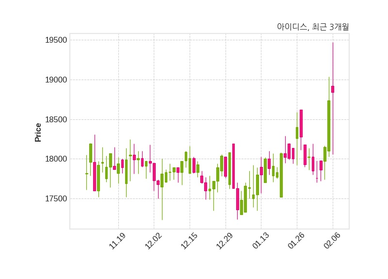 한편, 아이디스의 11시 43분 현재주가는 18,840원으로 직전 거래일 대비 100원(+0.53%) 상승이며, 거래량은 12,880주이다.