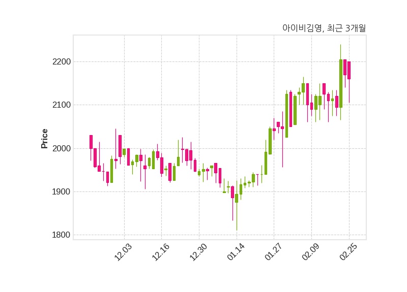 한편, 아이비김영은 장 마감 이후 해당 기업공시를 발표했으며 오늘 종가가 2,160원, 거래량은 108,856주로, 직전 거래일 대비 10원(-0.46%) 하락했다.