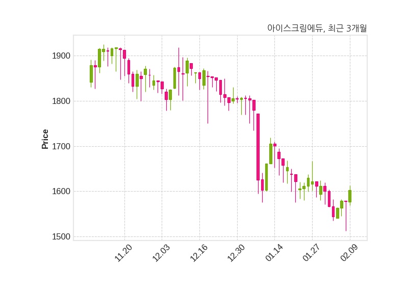 한편, 아이스크림에듀는 장 마감 이후 해당 기업공시를 발표했으며 오늘 종가가 1,603원, 거래량은 84,617주로, 직전 거래일 대비 25원(+1.58%) 상승했다.