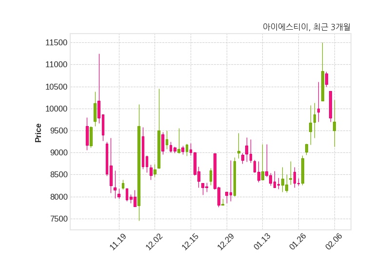 한편, 아이에스티이는 장 마감 이후 해당 기업공시를 발표했으며 오늘 종가가 9,700원, 거래량은 222,774주로, 직전 거래일 대비 90원(-0.92%) 하락했다.