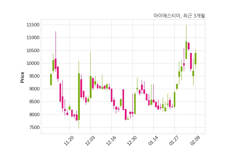 한편, 아이에스티이의 10시 44분 현재주가는 10,400원으로 직전 거래일 대비 700원(+7.22%) 상승이며, 거래량은 188,659주이다.