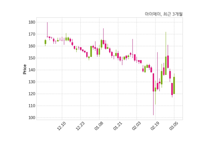 한편, 아이에이는 장 마감 이후 해당 기업공시를 발표했으며 오늘 종가가 134원, 거래량은 2,908,086주로, 직전 거래일 대비 15원(+12.61%) 상승했다.