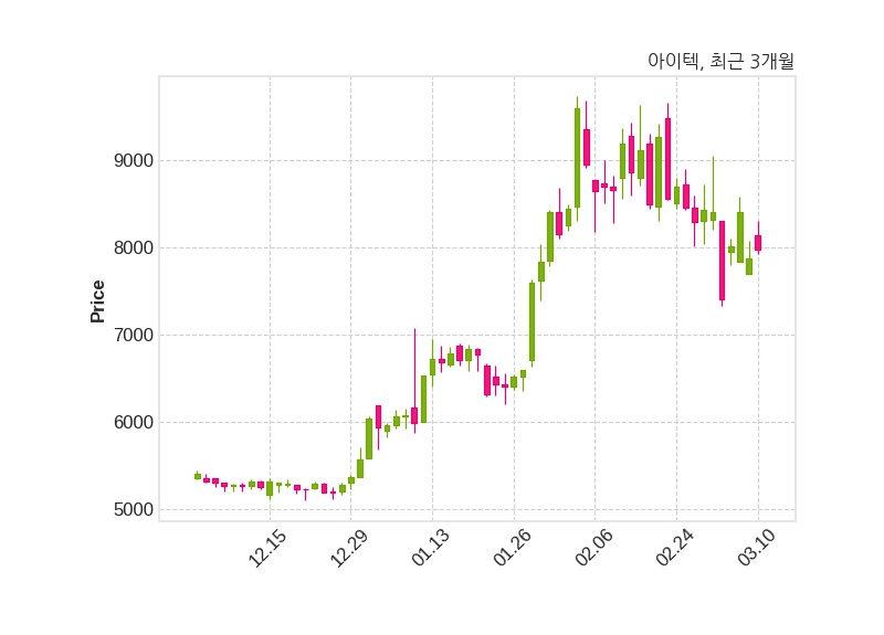 아이텍은 특별관계자 컴파-키움 OSAT 신기술사업투자조합의 지분율이 6.32%에서 8.06%로 변동했다고 10일 공시했다. 한편, 아이텍은 장 마감 이후 해당 기업공시를 발표했으며 오늘 종가가 7,970원, 거래량은 228,346주로, 직전 거래일 대비 90원(+1.14%) 상승했다.