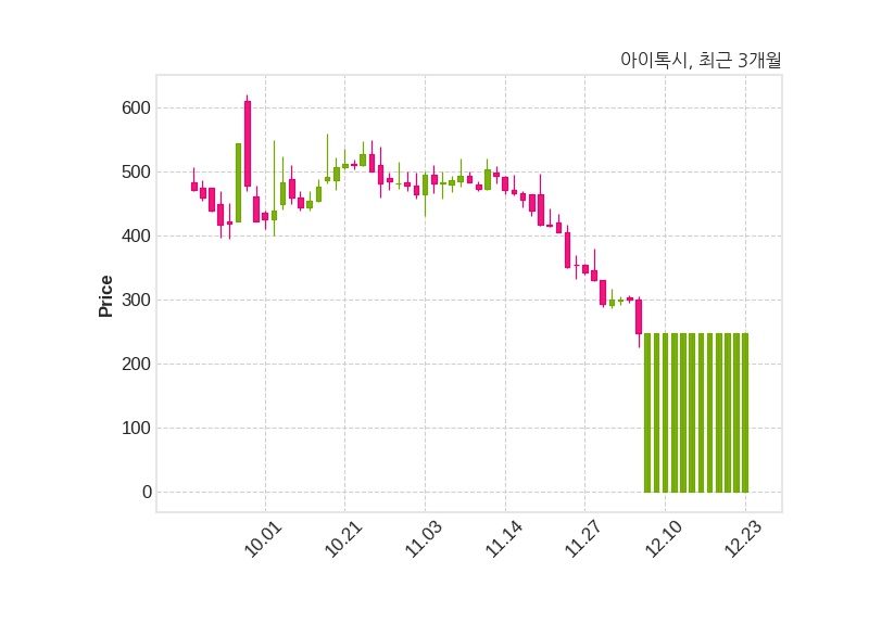 한국거래소는 23일 [코스닥] 상장기업인 아이톡시에 대해 보통주에 대한 주권매매거래 정지를 해제한다고 공시했다.해제일시는 12월 29일이며, 해제 사유는 감자 주권 변경상장이다.한편, 아이톡시는 거래정지 상태이다.공시 전문으로 이동