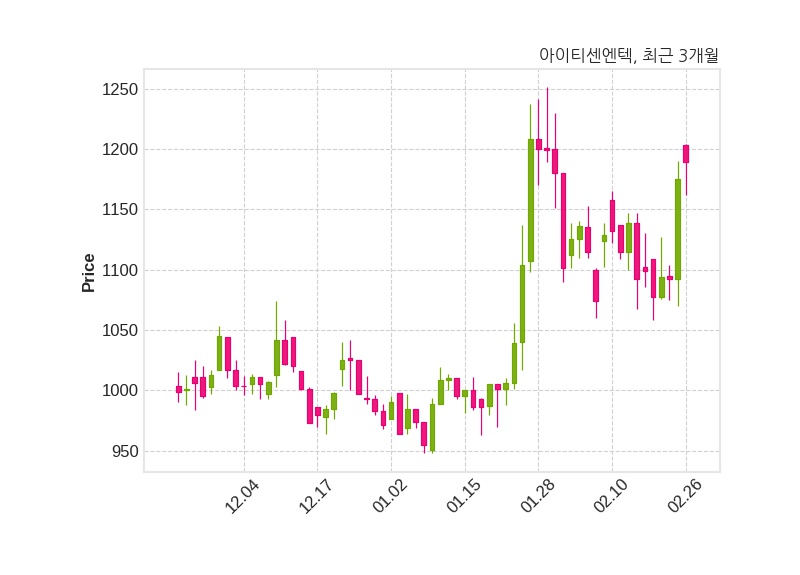 한편, 아이티센엔텍은 장 마감 이후 해당 기업공시를 발표했으며 오늘 종가가 1,189원, 거래량은 710,500주로, 직전 거래일 대비 14원(+1.19%) 상승했다.