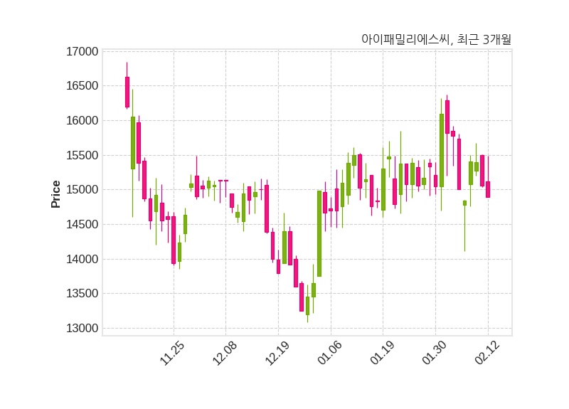 한편, 아이패밀리에스씨의 14시 49분 현재주가는 14,890원으로 직전 거래일 대비 170원(-1.13%) 하락이며, 거래량은 76,969주이다.