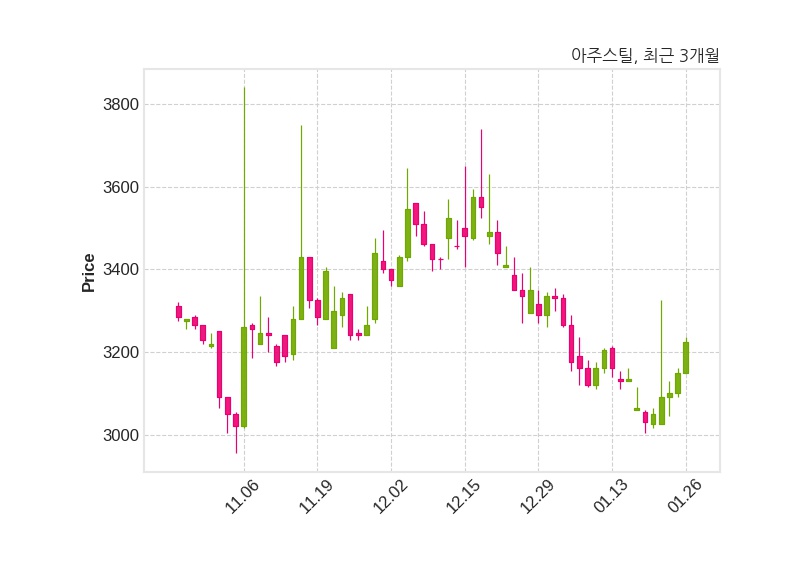 한편, 아주스틸은 장 마감 이후 해당 기업공시를 발표했으며 오늘 종가가 3,225원, 거래량은 48,874주로, 직전 거래일 대비 75원(+2.38%) 상승했다.
