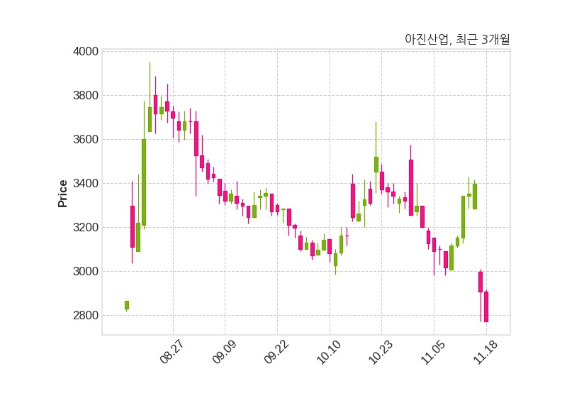 한편, 아진산업은 장 마감 이후 해당 기업공시를 발표했으며 오늘 종가가 2,770원, 거래량은 502,813주로, 직전 거래일 대비 135원(-4.65%) 하락했다.