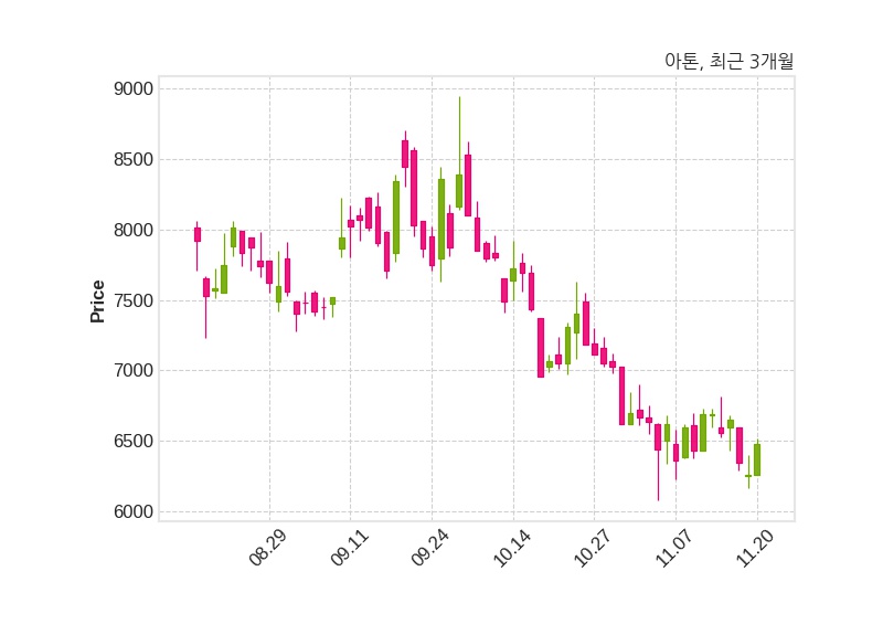 한편, 아톤은 장 마감 이후 해당 기업공시를 발표했으며 오늘 종가가 6,480원, 거래량은 140,459주로, 직전 거래일 대비 220원(+3.51%) 상승했다.