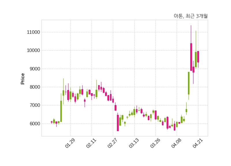 한편, 아톤은 장 마감 이후 해당 기업공시를 발표했으며 오늘 종가가 9,350원, 거래량은 1,920,305주로, 직전 거래일 대비 560원(-5.65%) 하락했다.