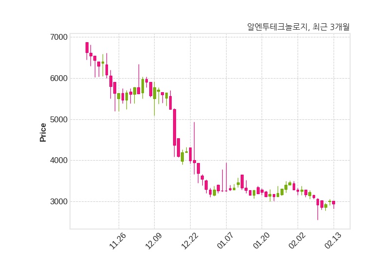 한편, 알엔투테크놀로지의 15시 20분 현재주가는 2,940원으로 직전 거래일 대비 65원(-2.16%) 하락이며, 거래량은 48,719주이다.