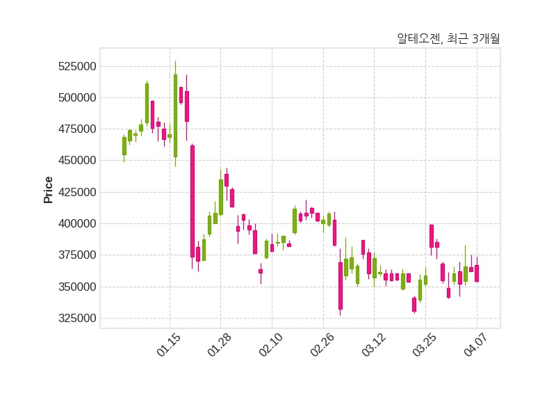 알테오젠은 특별관계자 박순재의 지분율이 20.4%에서 20.54%로 변동했다고 07일 공시했다. 한편, 알테오젠은 장 마감 이후 해당 기업공시를 발표했으며 오늘 종가가 354,000원, 거래량은 191,491주로, 직전 거래일 대비 8,000원(-2.21%) 하락했다.